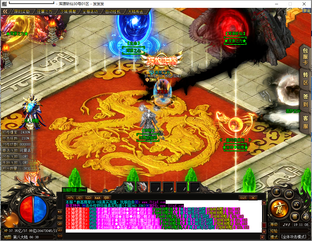 - 【版本说明】: 上线就送MAX刀速+双倍爆率提升.装备嗷嗷全爆.人人土豪装逼又激情!